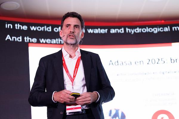 Sanz answered the question: How does Adasa address the challenge of intelligent sanitation systems? By deploying integrated solutions from sensors to data analysis and management for decision-making, and by optimizing the integrated operation of sewerage systems, drainage networks, and wastewater treatment plants.