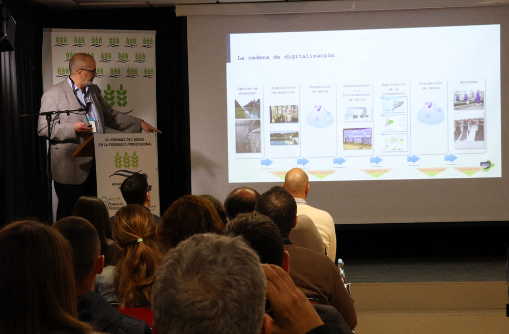 Jordi Cros, responsable de Innovación en Adasa, ha expuesto las claves técnicas para digitalizar el ciclo urbano del agua en la V Jornada de l’Aigua en la Formació Professional organizada por el IES Beatriu Fajardo de Mendoza en Benidorm. Para Adasa, esta iniciativa impulsa su apuesta estratégica por la FP, entendida como una inversión clave en el futuro del agua.