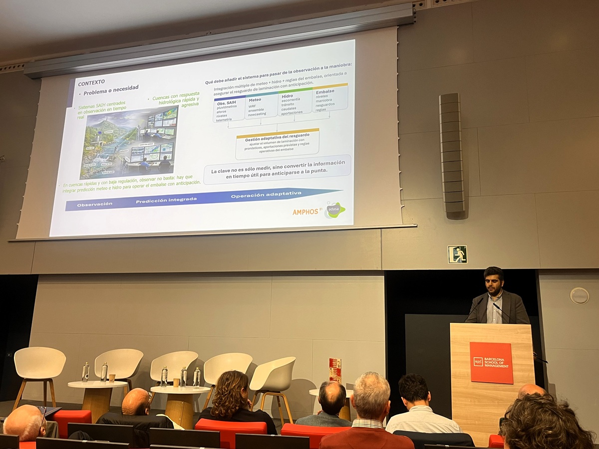 Sergio López, Business Manager Watershed C&M de Adasa, ha desarrollado la ponencia: “Flowcat: Predicciones de caudales y volúmenes, con un enfoque multimodelo y multihorizonte” fruto de un trabajo que está permitiendo mejorar la predicción de avenidas, optimizar la operación de embalses y aumentar la seguridad hídrica del sistema.