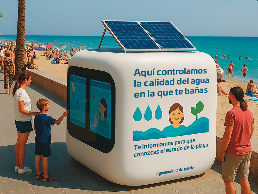 Su instalación en un módulo visible y sostenible —alimentada con energía solar y diseñada con materiales eco— convierte la obligatoriedad del control de calidad del agua en una oportunidad de comunicación y aportar un valor turístico.